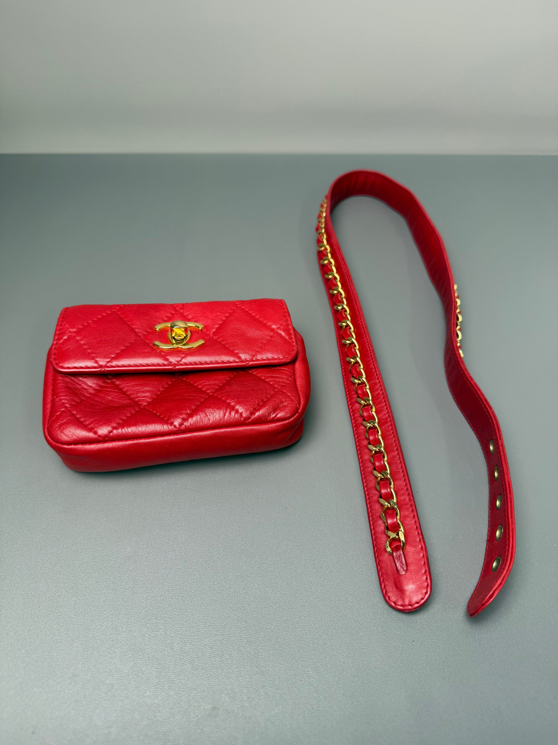 Crafted from Chanel's signature diamond-quilted lambskin, this waist bag boasts a luxuriously soft touch. Adorned with the iconic gold-tone interlocking CC turn-lock, it instantly elevates any look. The adjustable leather-and-chain strap offers 3 versatile ways to wear it: as a waist bag, crossbody, or shoulder bag. Effortlessly transition from daytime errands to evening outings with this timeless blend of Parisian elegance and modern functionality—a must-have for lovers of understated luxury.