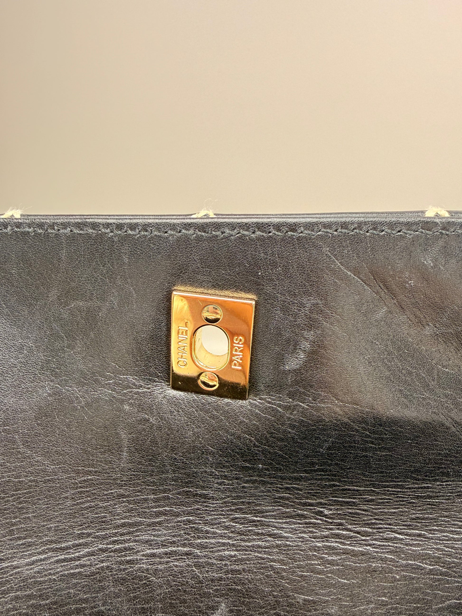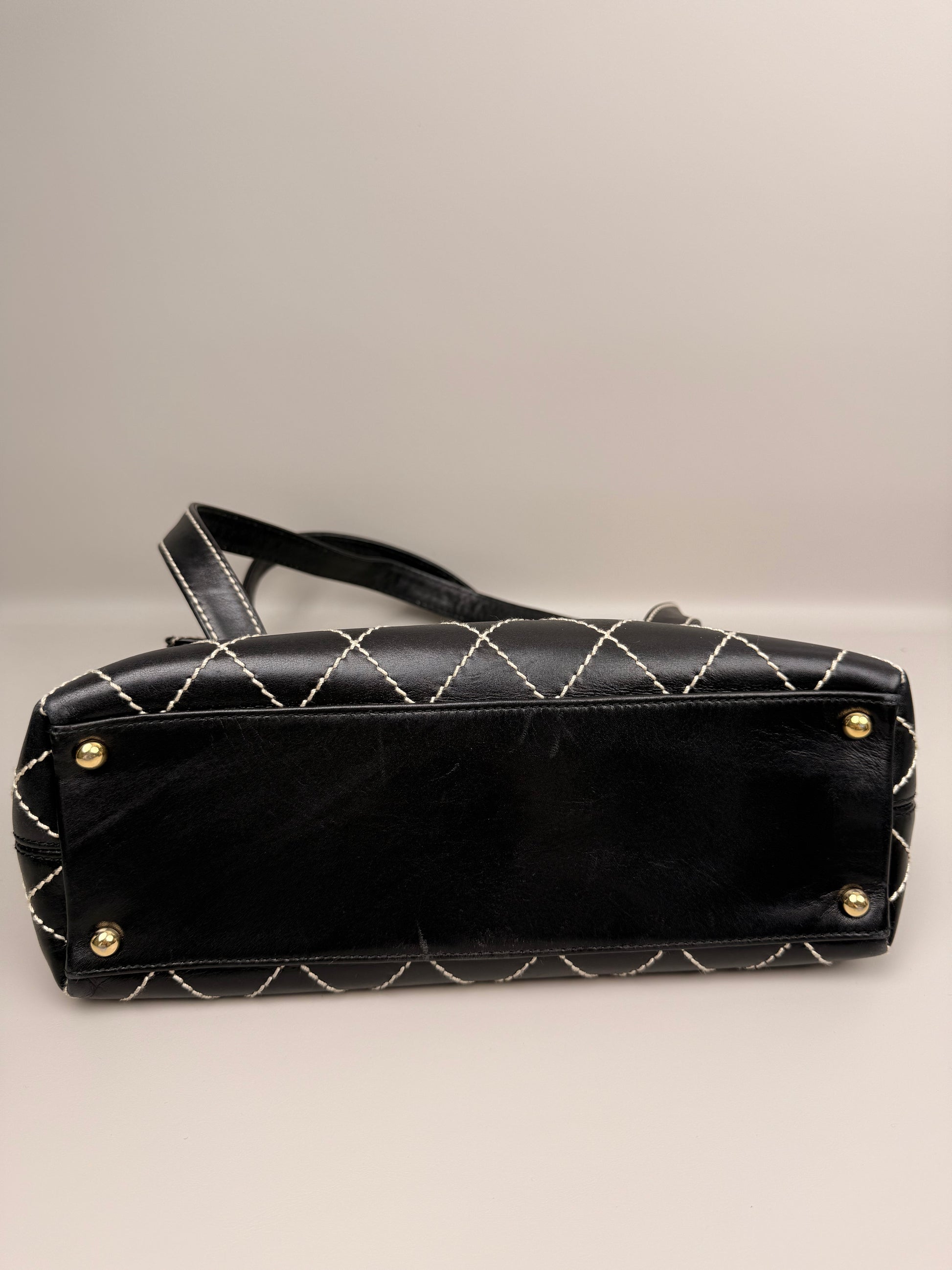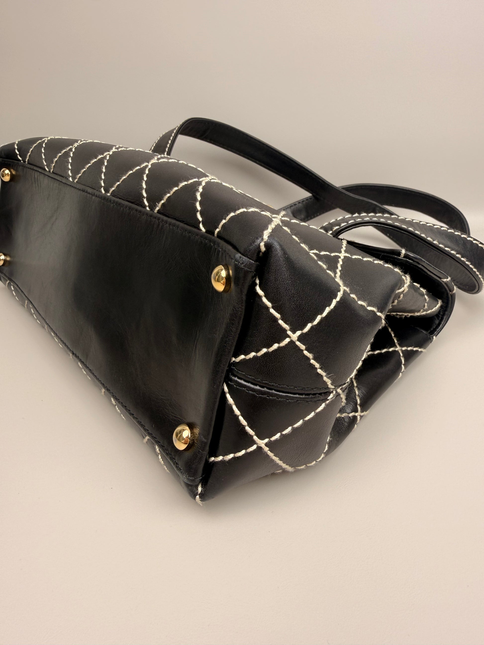 Black Quilted Calfskin Wild Stitch Surpique Flap Bag Vintage