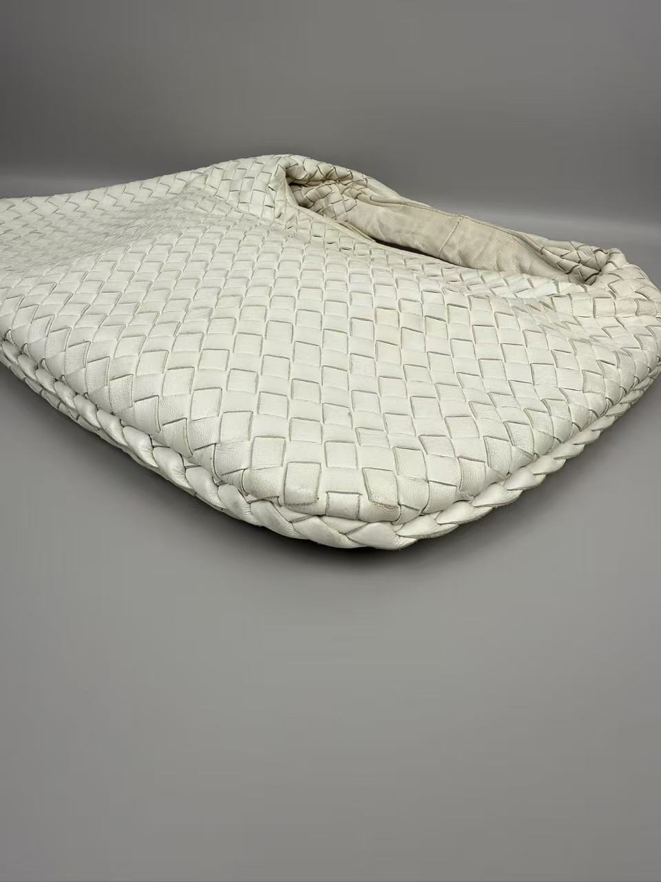This Bottega Veneta Intrecciato Hobo Bag is a masterpiece of craftsmanship. Made from hand-woven white leather, it features a structured yet slouchy silhouette. The brand’s signature Intrecciato technique highlights exquisite artistry, making it a versatile piece that blends understated luxury with everyday functionality, ideal for those who appreciate timeless design and premium quality.