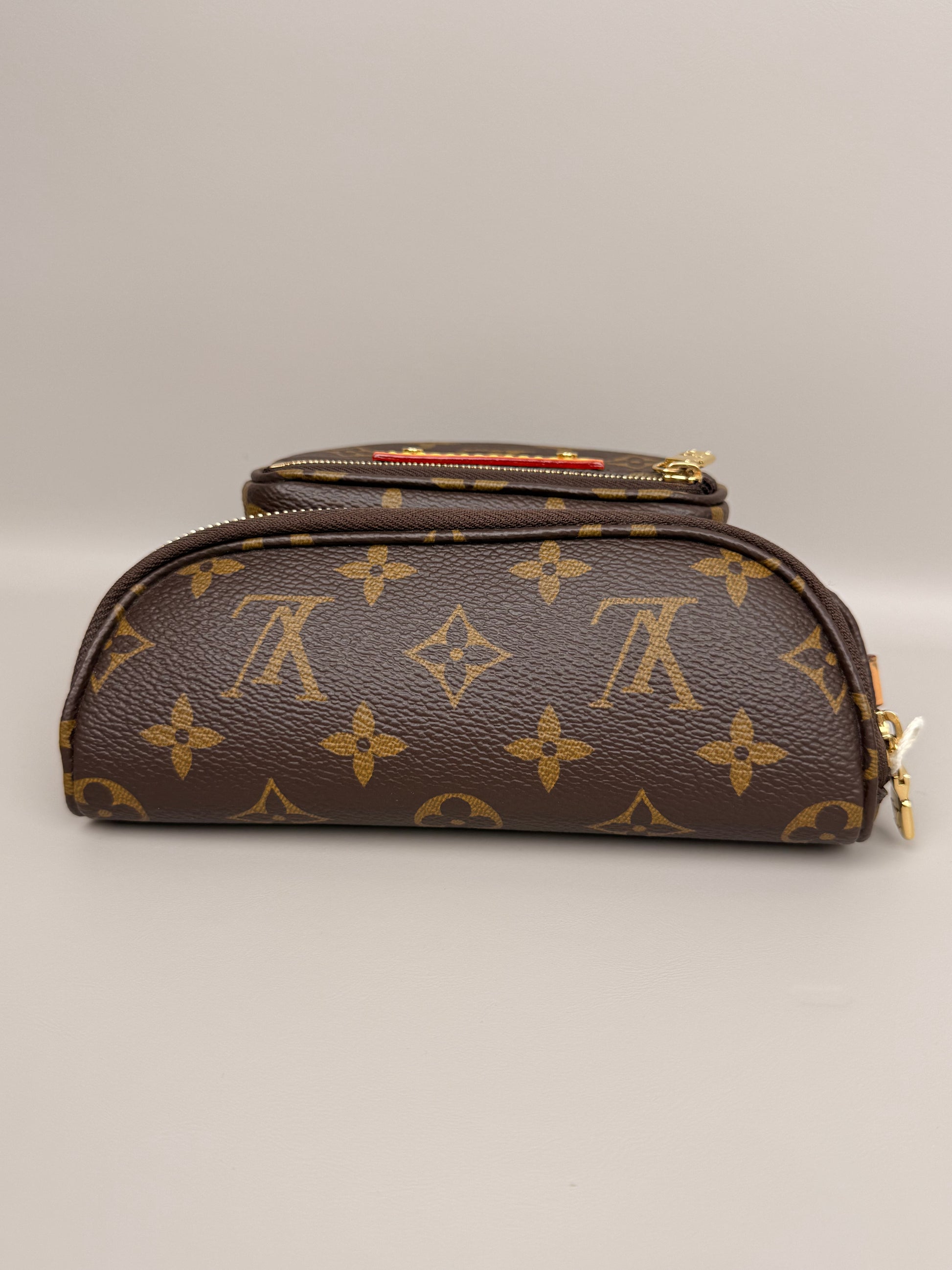 Authentic and brand-new, this Louis Vuitton mini bumbag boasts surprising capacity that easily accommodates a large smartphone. It comes with a full suite of original accessories: chain, strap, dust bag, box, product tag, and the classic blue ribbon. A perfect addition to any high-end accessory collection.