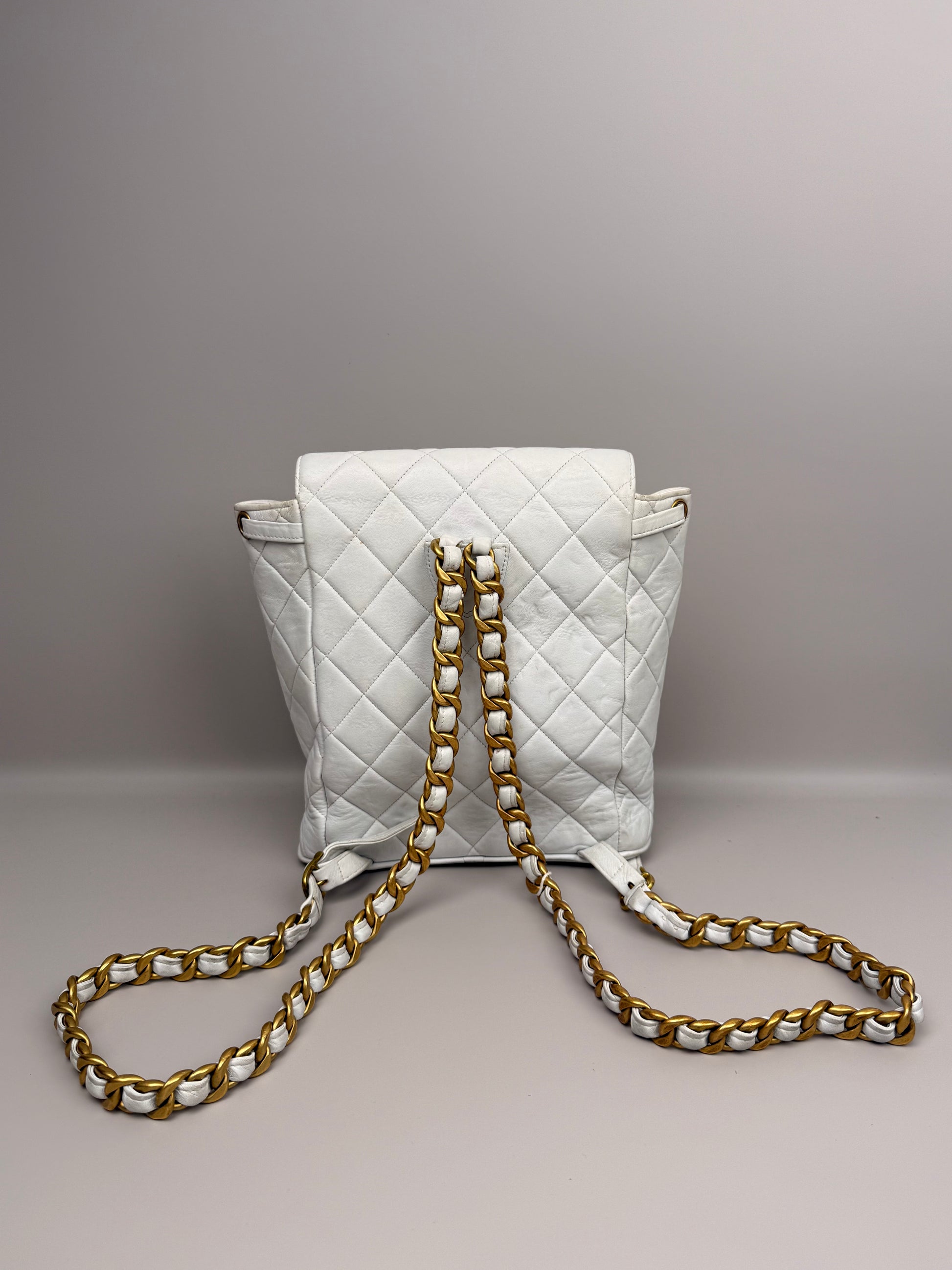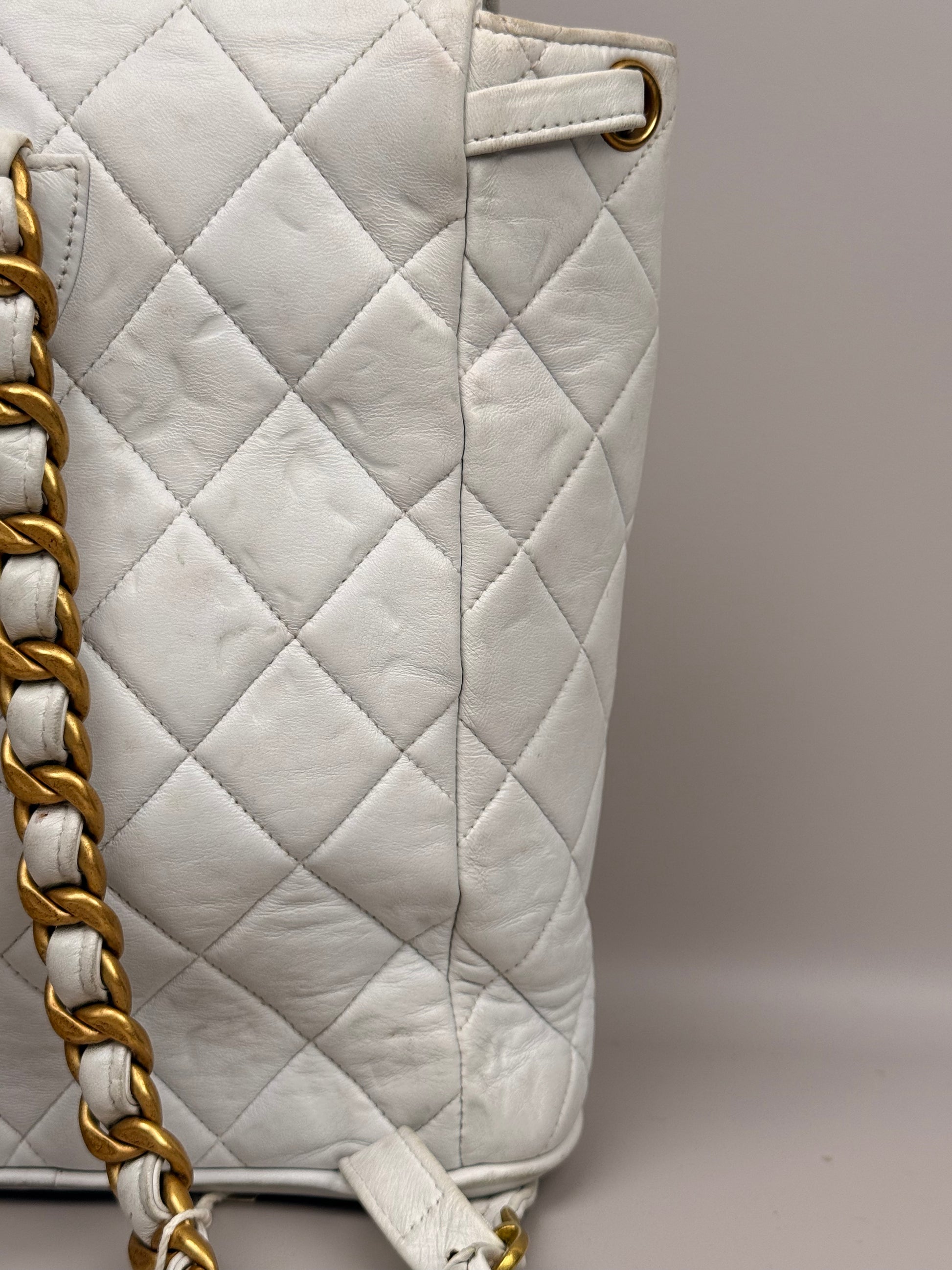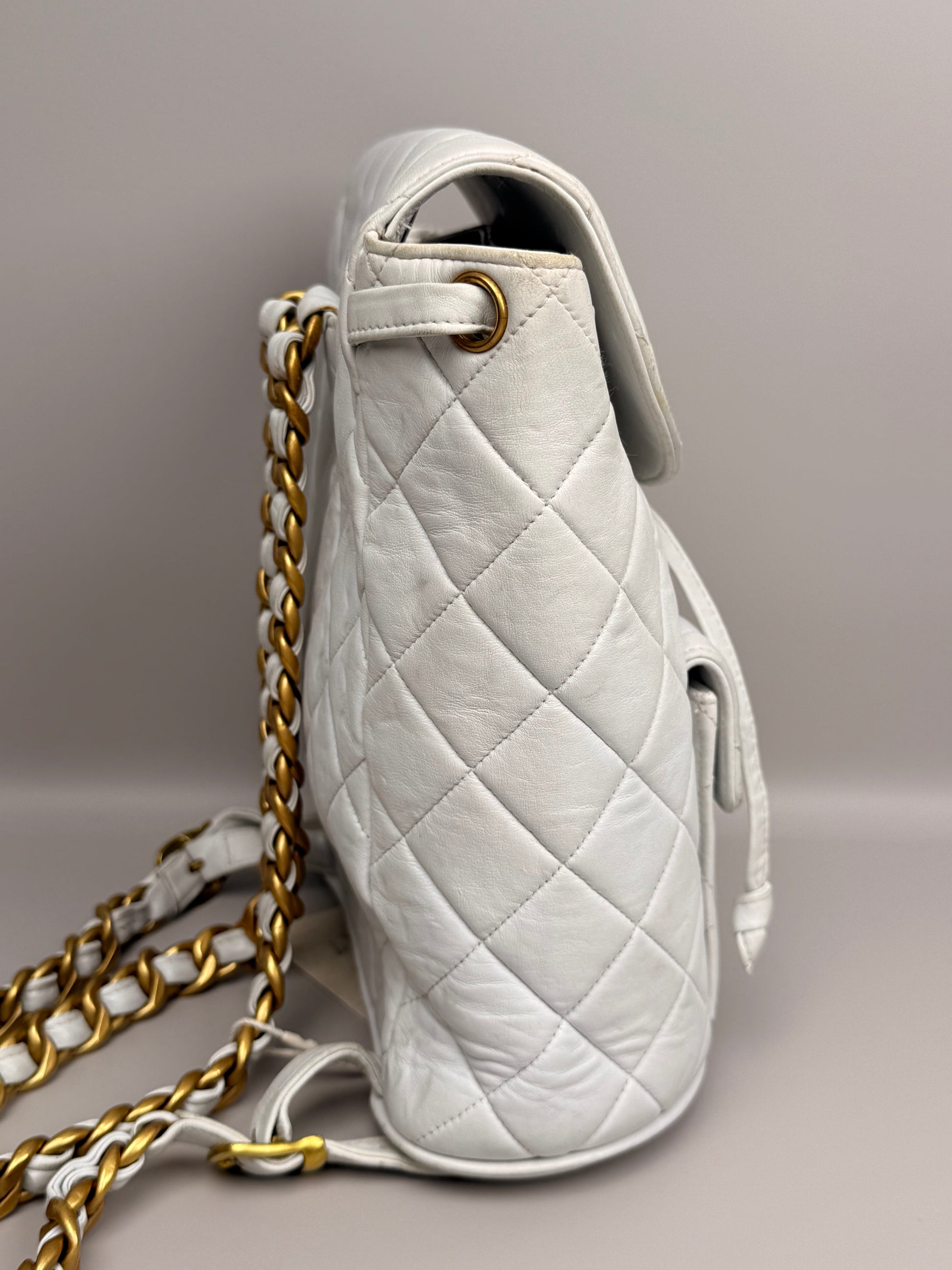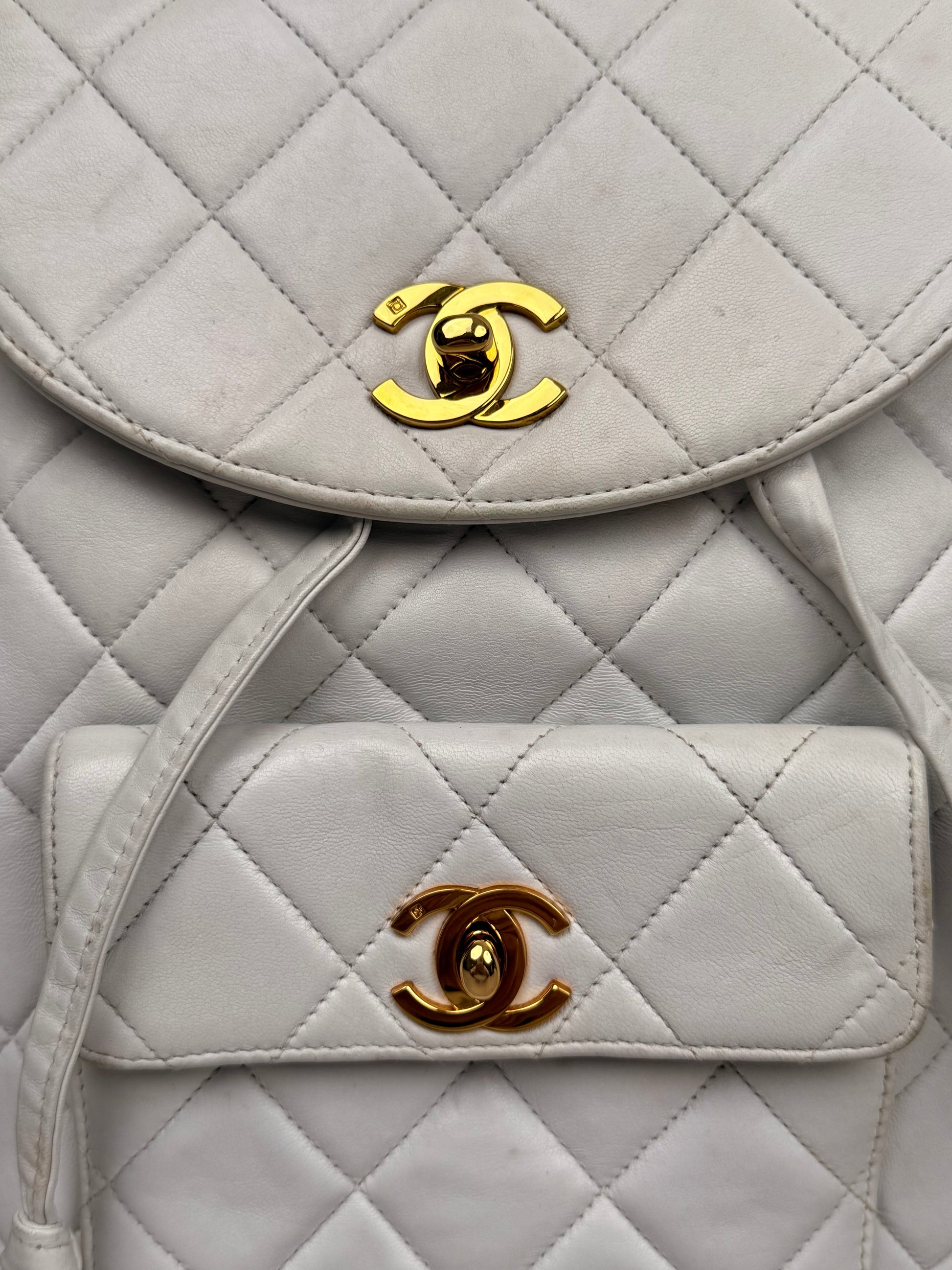 Silver Quilted Lambskin Medium Timeless CC Duma Backpack Gold Hardware