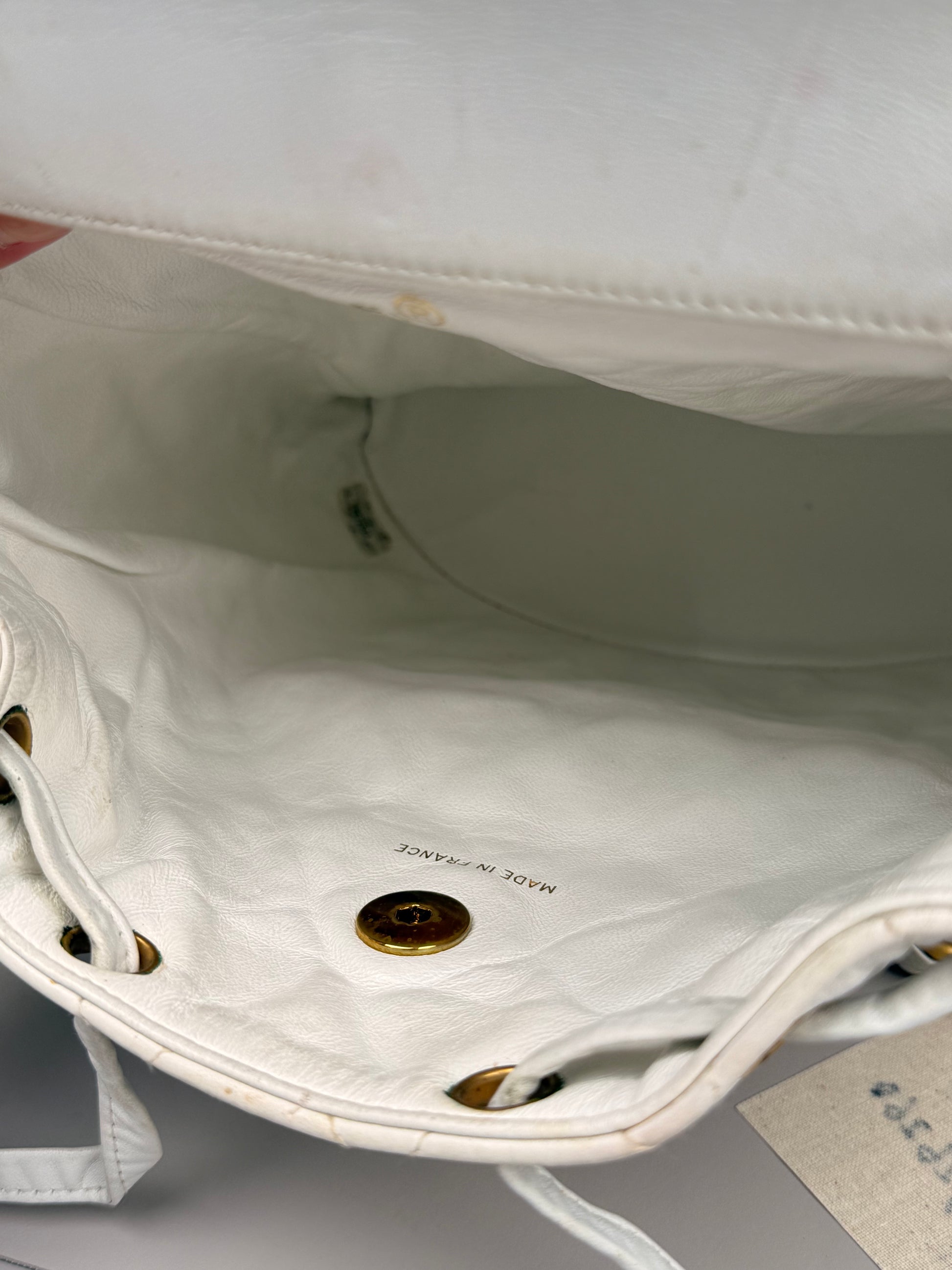 This 1991-1994 Chanel Medium Timeless CC Duma Backpack marries 90s luxury with iconic design: silver quilted lambskin paired with gleaming gold hardware, lined in tonal leather for polished cohesion. A vintage gem from Chanel’s coveted era, it arrives with its original dust bag. Note: This piece is final sale and ineligible for returns.
