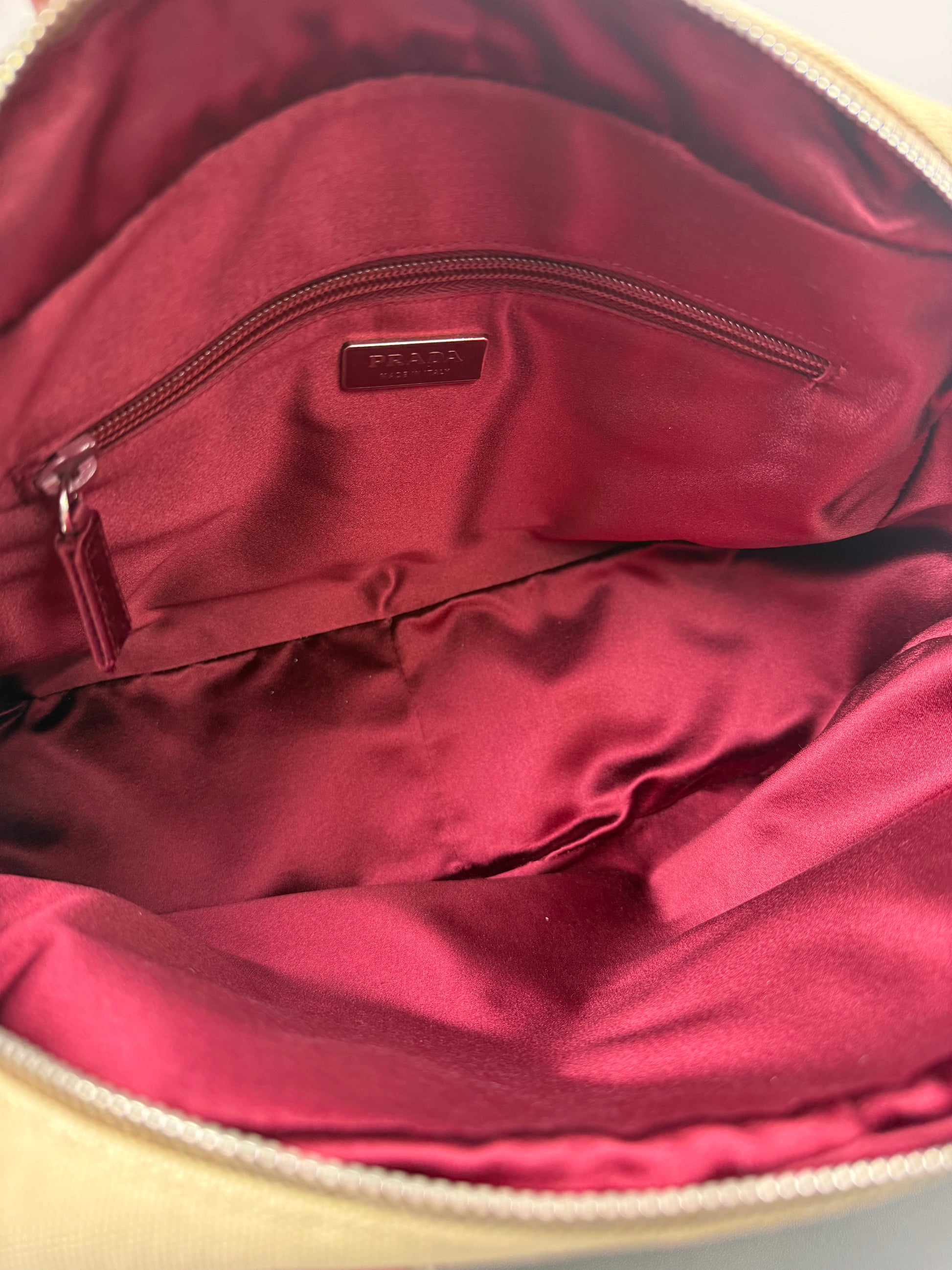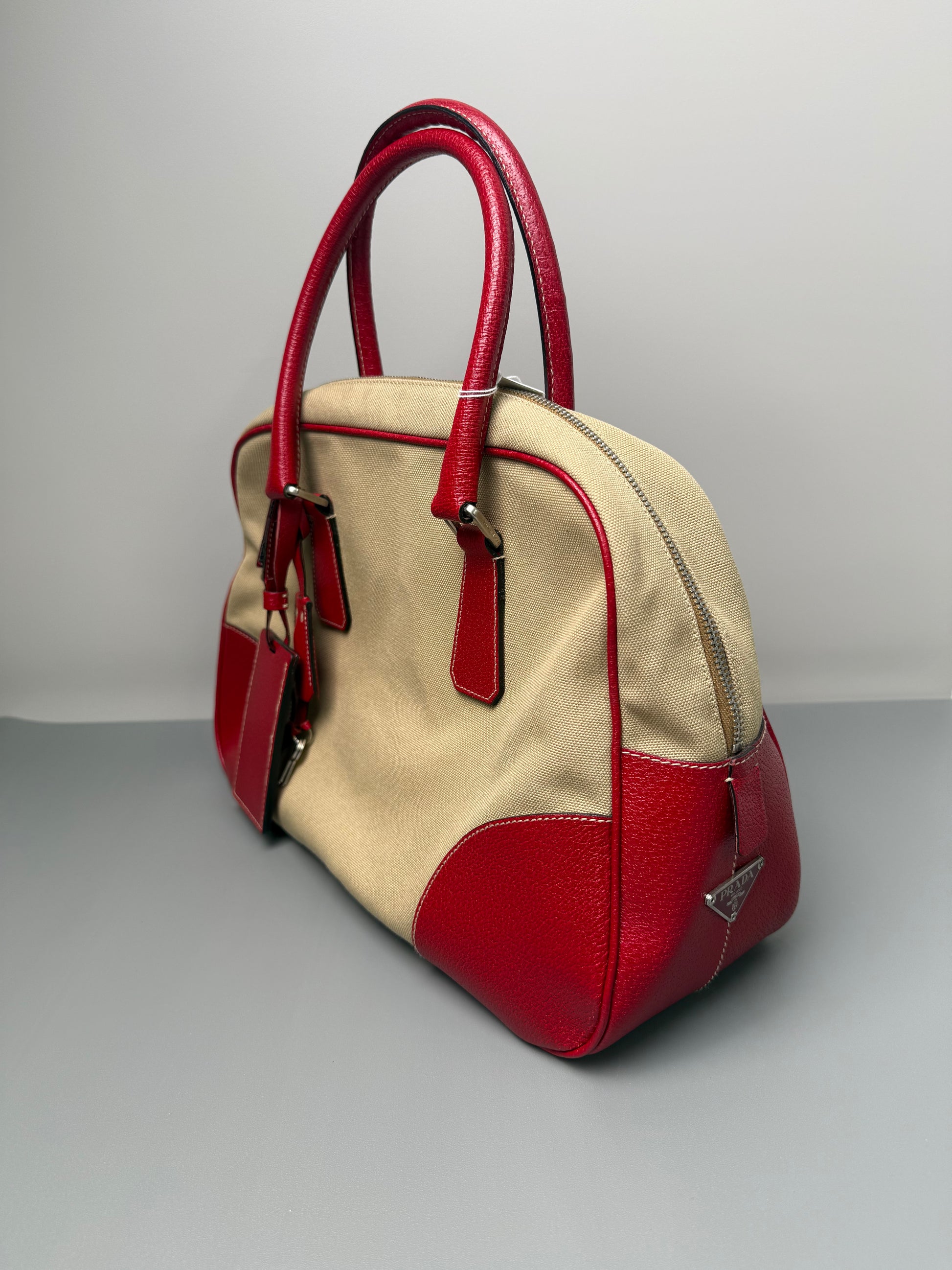 Prada Brown Canapa Bauletto Handbag Red Beige